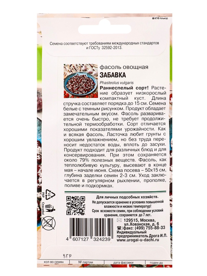 Семена Фасоль овощная «ЗАБАВКА», 5 г, «УРОЖАЙ УДАЧИ»