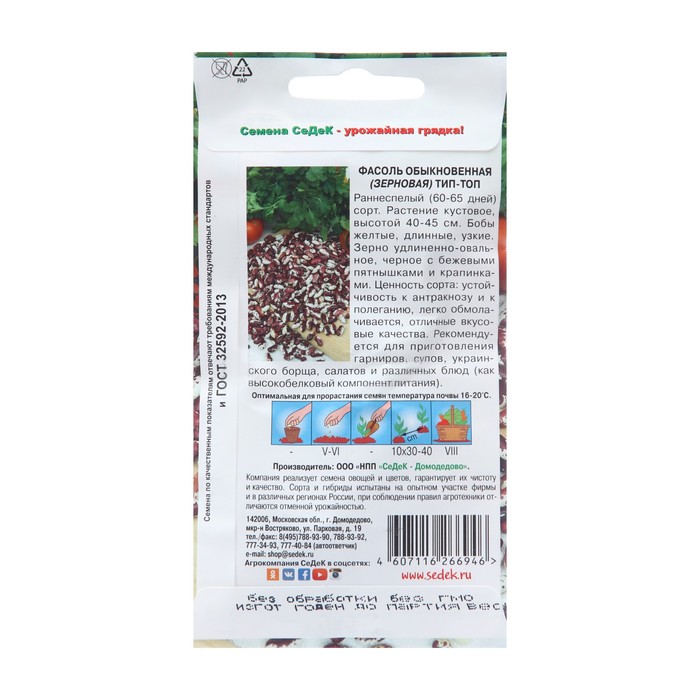 Семена Фасоль «Тип-Топ» зерновая, 5 г, «СеДеК»
