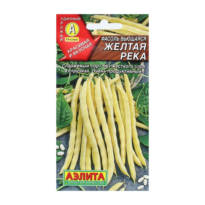 Красивый и очень продуктивный, среднеранний, спаржевый сорт. Урожай созревает через 55-65 дней после появления всходов. Растения вьющиеся, мощные, нуж даются в опоре. Створки бобов золотисто-желтые, не содержат жесткого пергаментного слоя. Семена светло-бежевые, крупные, плотно заполняют стручки.В кулинарии используются молодые бобы целиком и спелые семена. Сорт подходит для консервирования и замораживания. Перед посевом семена замачивают в воде до набухания. Посевы размещают на хорошо прогреваемых, рыхлых почвах с нейтральной кислотностью. При высоте растений 12-15 см проводят окучивание. Сбор урожая проводят несколько раз по мере созревания бобов.
