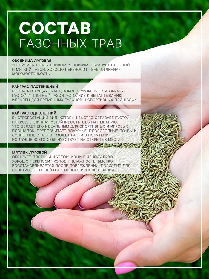 Серия семян газона «Hallo, gras!» – это сочетание немецких и российских трав, каждая из которых обладает определенными свойствами для создания качественного и устойчивого газона в различных климатических условиях.