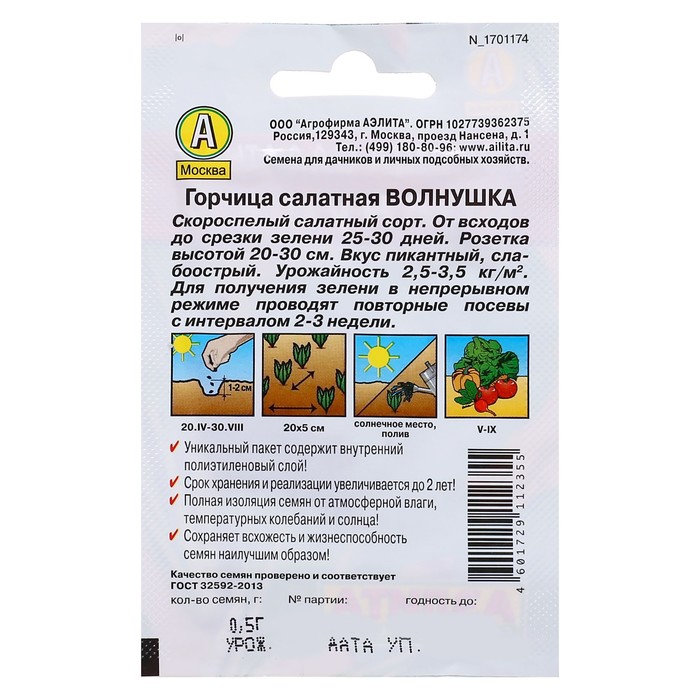 Благодаря внутреннему полиэтиленовому слою пакет не пропускает влагу и увеличивает срок годности семян до 2 лет.
