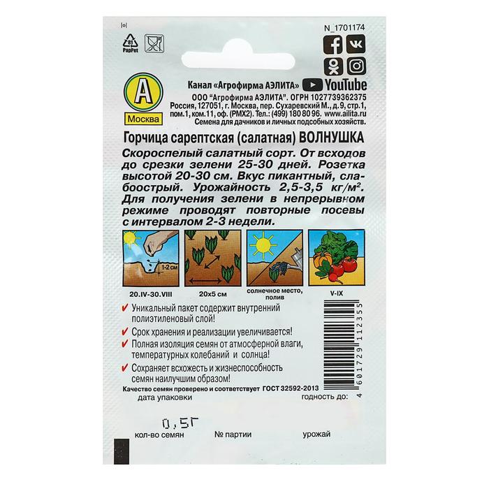 «Волнушка» представляет собой скороспелый салатный сорт горчицы. Имеет пикантный слабоострый вкус.