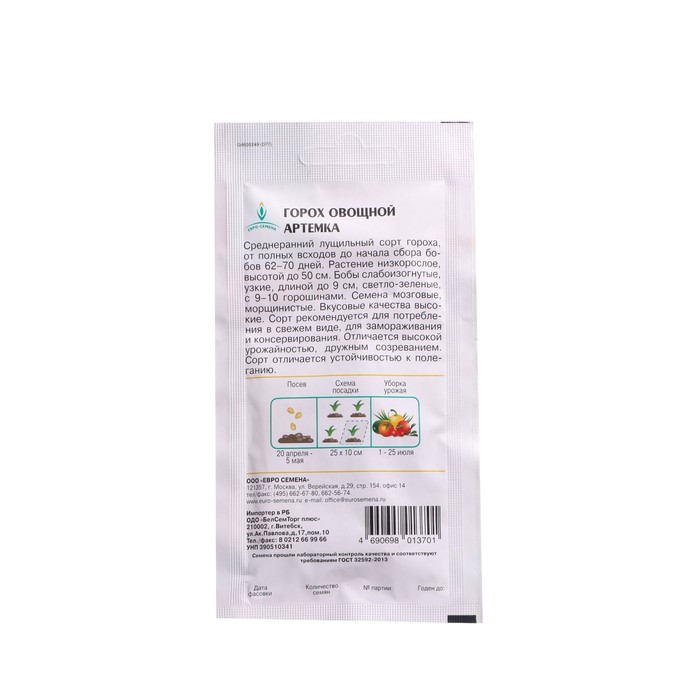 Среднеранний лущильный сорт гороха, от полных всходов до начала сбора бобов 62-70 дней. Растение низкорослое, высотой до 50 см. Бобы слабоизогнутые, узкие, длиной до 9 см, светло-зеленые, с 9-10 горошинами. Семена мозговые, морщинистые. Вкусовые качества высокие. Сорт рекомендуется для потребления в свежем виде, для замораживания и консервирования. Отличается высокой урожайностью, дружным созреванием. Сорт отличается устойчивостью к полеганию.