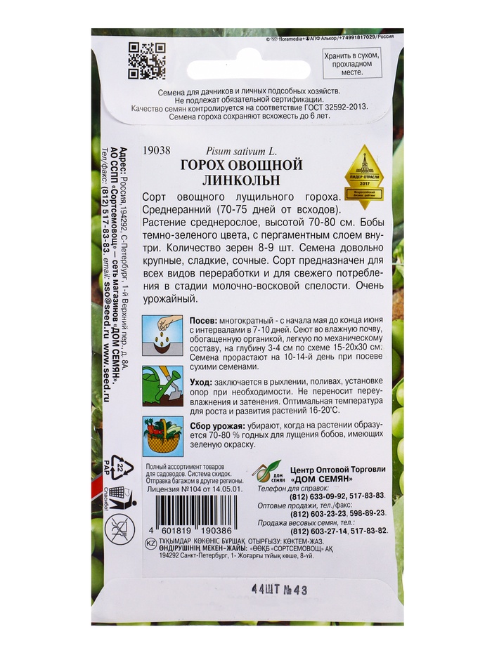 Семена Горох овощной сладкий Линкольн 44 шт
