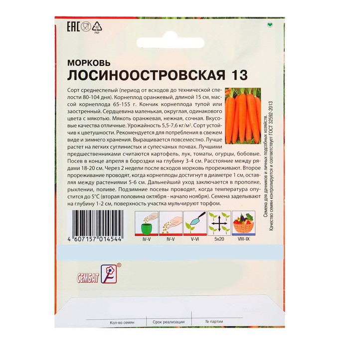 Среднеспелый высокоурожайный сорт. Розетка листьев полустоячая, сочного зеленого цвета. Поверхность корнеплода, мякоти и сердцевины оранжевой окраски. Форма корнеплода цилиндрическая, часто со слабым сбегом вверх и вниз, кончик его тупой. Длина 15 см и более, диаметр 4.5 см. Большинство корнеплодов погружено в почву, иногда выступают над поверхностью почвы до 4 см, на легких почвах выдергиваются легко. Масса товарного корнеплода 130-150 грамм. Назначение универсальное. Ценится за высокую урожайность, отличные вкусовые качества, устойчивость к цветушности и лежкость.