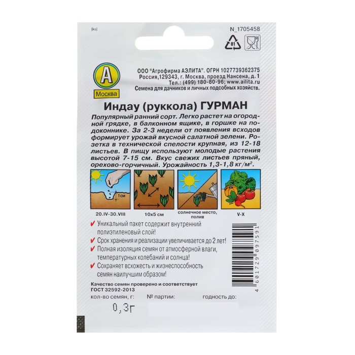 Благодаря внутреннему полиэтиленовому слою пакет не пропускает влагу и увеличивает срок годности семян до 2 лет.