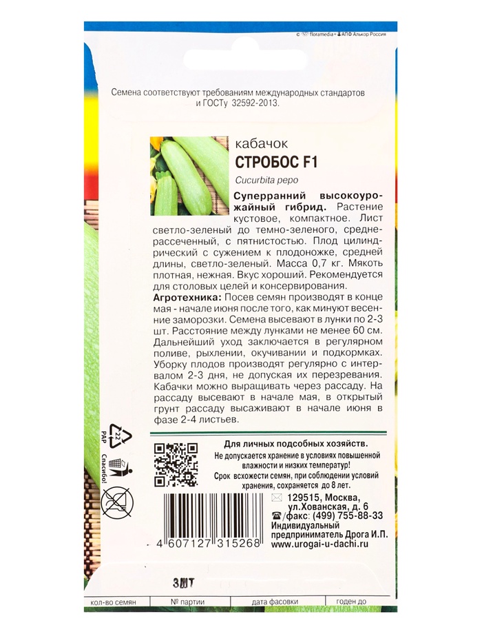 Семена Кабачок Стробос F1 тип Искандер 3 шт.