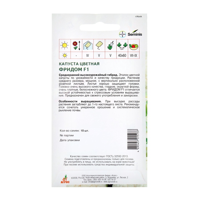 Семена цветной капусты сорта «Фридом» F1 - идеальный выбор для огородников, стремящихся получить качественный и устойчивый урожай. Этот гибрид среднего срока созревания зарекомендует себя как надежный помощник в получении вкусной и полезной продукции.