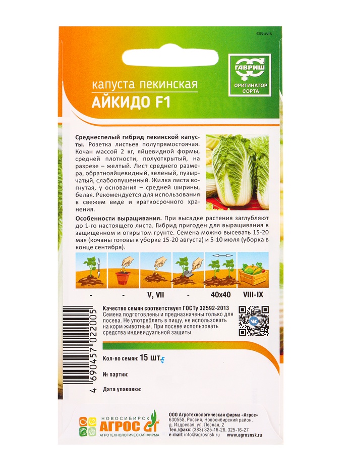 Семена Капуста пекинская Айкидо" F1 15 шт