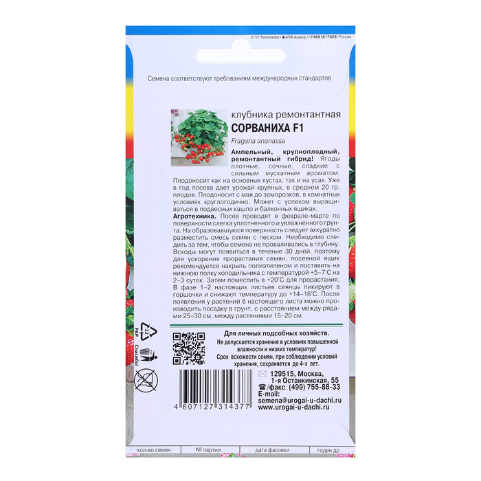 Ампельный, крупноплодный, ремонтантный гибрид! Ягоды плотные, сочные, сладкие с сильным мускатным ароматом. Плодоносит как на основных кустах, так и на усах. Уже в год посева дает урожай крупных, в среднем 20 гр. плодов. Плодоносит с мая до заморозков, в комнатных условиях круглогодично. Может с успехом выращиваться в подвесных кашпо и балконных ящиках.
