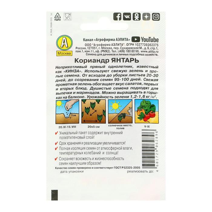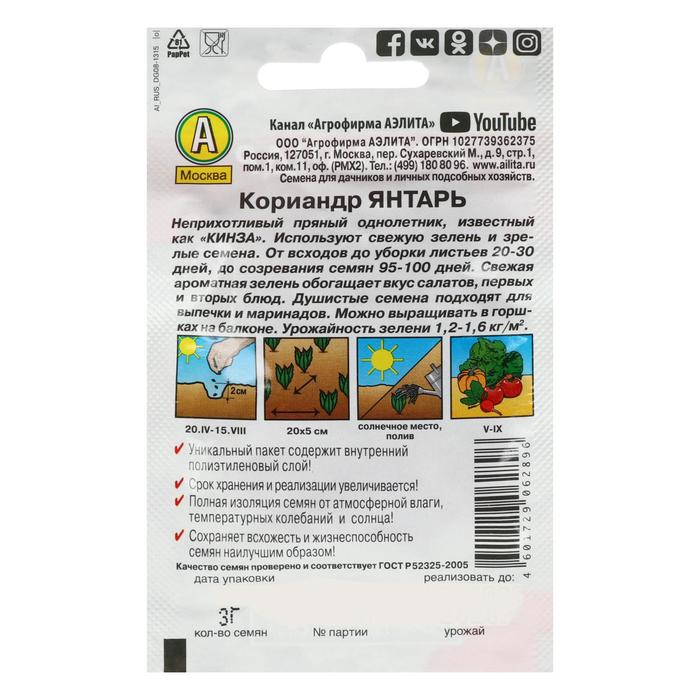 Эфиромасличное, пряно-ароматическое однолетнее растение, обладает лекарственными свойствами. Сорт среднеспелый, от всходов до созревания семян 95-100 дней. Урожайность зелени – 1,2-1,6 кг/м2. Высота растений 40-50 см. Сорт отличается пластичностью, приспособлен к различным почвенно-климатическим условиям. Холодостойкий, засухоустойчивый, хороший медонос. Посев семян в открытый грунт на глубину 2 см. Чтобы получать урожай в течение продолжительного времени, семена высевают несколько раз за сезон с интервалом 15-20 дней. Уборку зелени проводят до появления цветоносов. Возможен подзимний посев – в конце октября – начале ноября. Растениям необходимы своевременные поливы, прополки, рыхления и подкормки.