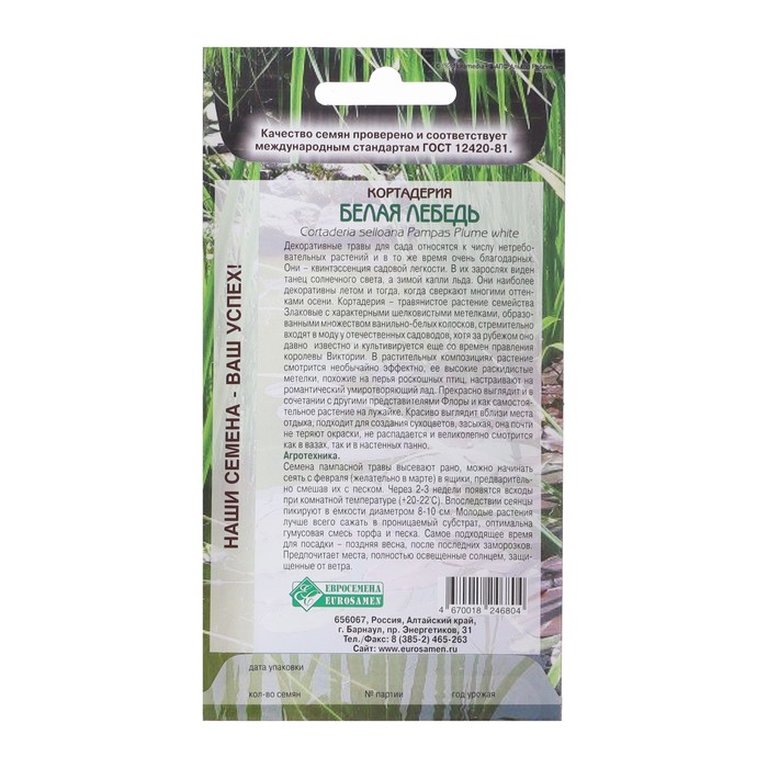 Семена кортадерия «Белая Лебедь», 0 ,05 г