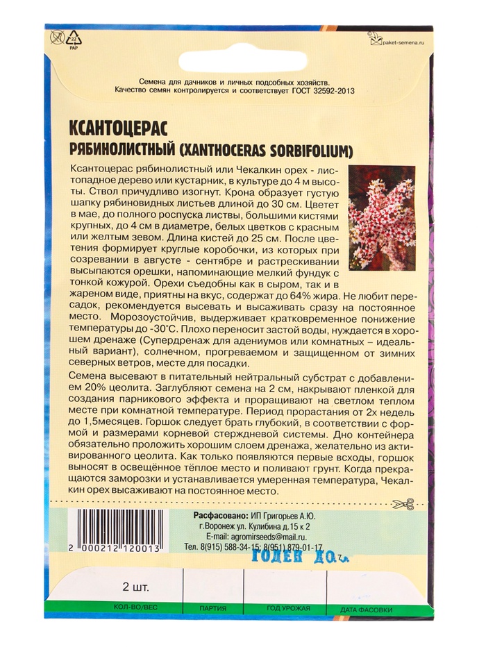 Семена Ксантоцерас Рябинолистный (Чекалкин орех) 2шт. 12.29 г.