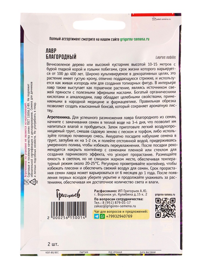 Семена Лавр Благородный 2 шт. / НОВИНКА 12.29 г.