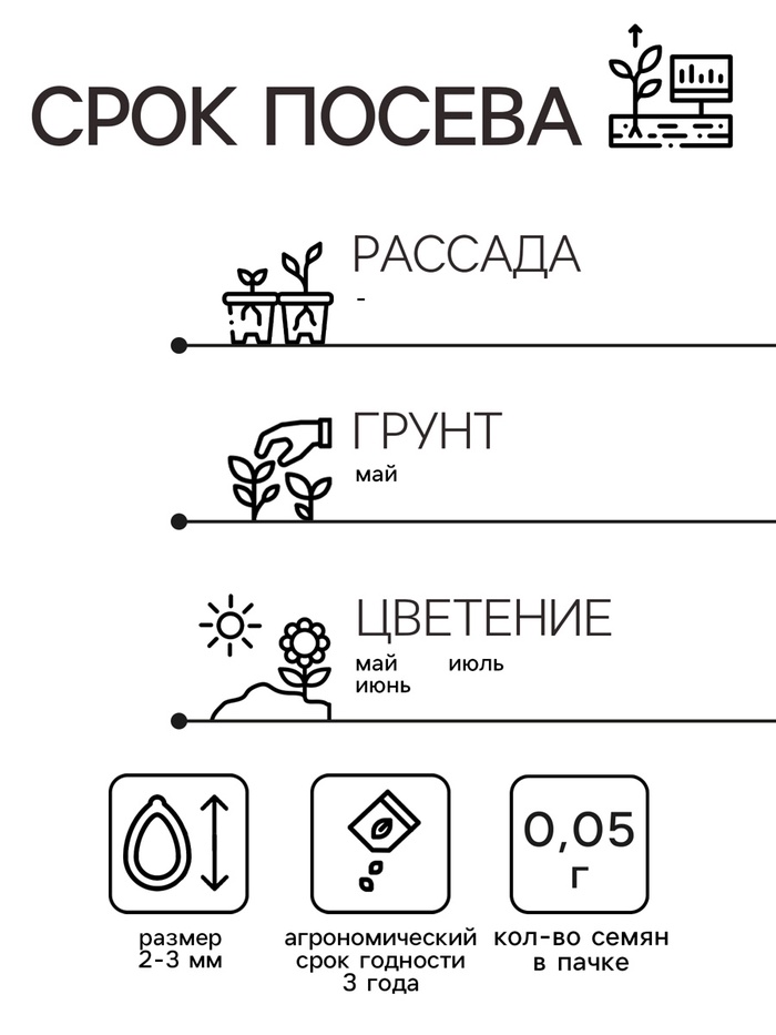 Традиционный метод посадки – семенной. Применяют рассадный и безрассадный для выращивания цветка. Семена подготавливают – помещают в раствор гумата на 12 часов. Участок земли предварительно перекапывают и удобряют перегноем. Для семян делают небольшие углубления в грунте – до 1,5 см. После раскладывания в лунки семена присыпают почвой, поливают. При такой посадке семена прорастают на 2–3 год.