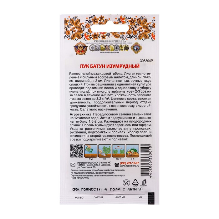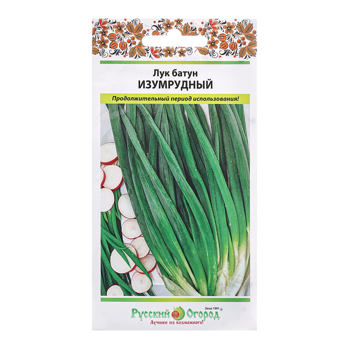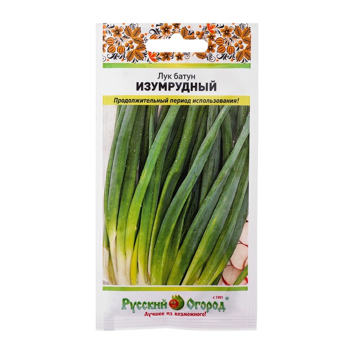 Раннеспелый гибрид лука репчатого и лука батуна с нежными, сочными и сладкими салатными листьями. Листья тёмно-зелёные с восковым налетом длиной 70-85 см, шириной - 1,5-1,9 см. Гибрид можно выращивать как однолетнюю и как многолетнюю культуру. При выращивании однолетней культуры проводят подзимний посев с разовой уборкой урожая в июне-июле. Для выращивания многолетней культуры посев проводят весной, а листья срезают 2-3 раза за сезон. И так на протяжении 4-5 лет. Сезонная урожайность более 3 кг/кв.м. Сорт отличается растянутым периодом использования, высокой урожайностью, зимостойкостью, устойчивостью к пероноспорозу.