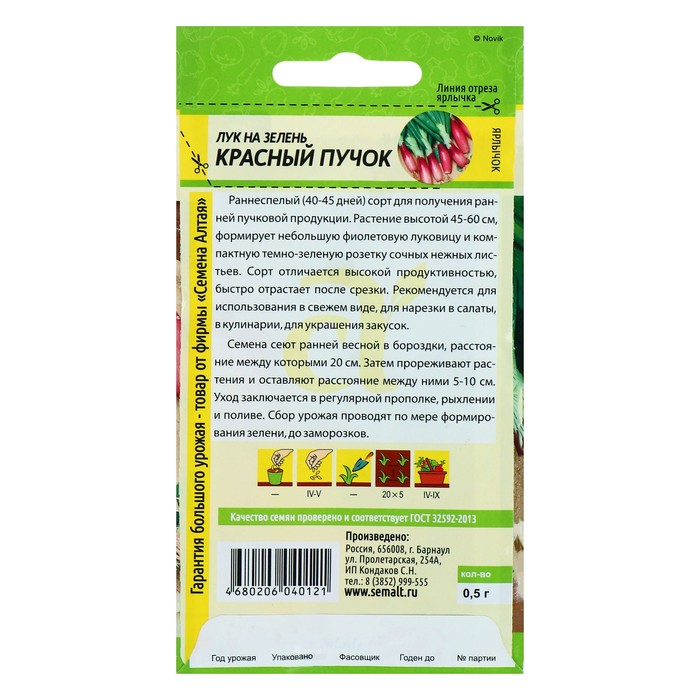 Зимостойкий, раннеспелый, многолетний лук. От всходов до первой срезки 40-45 дней, от весеннего отрастания до уборки на второй год – 18-25 дней. Растения высотой 45-60 см, массой 60-70 г, с несколькими ложными стеблями. Листья нежные, сочные, с приятным полуострым вкусом. Сорт устойчив к болезням культуры, долго сохраняет хозяйственную годность, быстро отрастает после срезки.