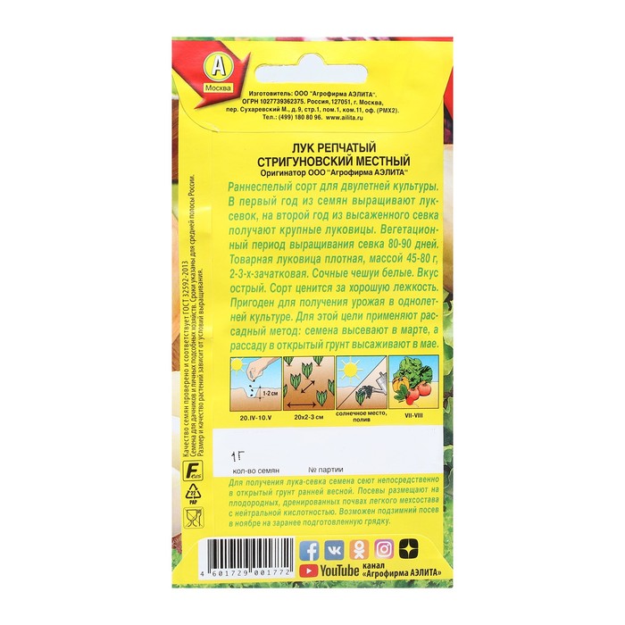 Скороспелый (77-98 дней от всходов до массового полегания и пожелтения листьев) сорт. Рекомендуется для выращивания в двулетней культуре из севка. Посев семян в открытый грунт производят в конце апреля, начале мая, на глубину 1,0-1,5 см. Форма луковицы округлая, с небольшим сбегом вверх и вниз. Окраска сухих чешуй желтая, иногда с розовым или светло-серым оттенком в области шейки, сочных – белая. Малогнездный, малозачатковый (2-4). Масса луковицы 45-80 г. Вкус острый. Обладает хорошей лежкостью. Схема посева 10x5 см. Товарная урожайность 1,2- 3,3кг/м2.