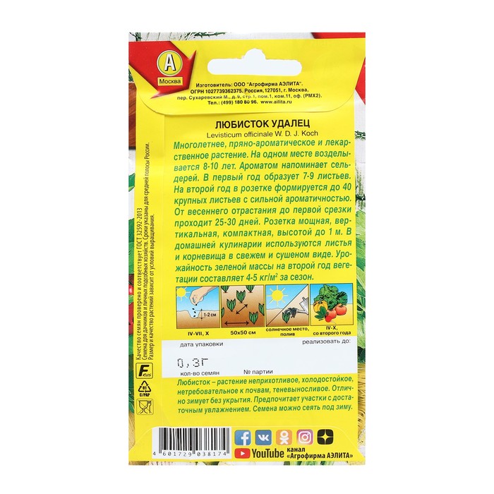 Любисток «Удалец» — это пряно-ароматический многолетник, у которого период от отрастания до первой срезки длится 25–30 дней. Урожайность зелёной массы составляет 4–5 кг/м² за сезон.