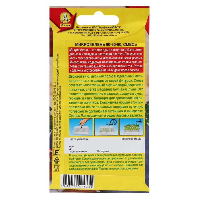 - Уникальный гибрид микрозелени, сочетающий три популярных культуры: салат, рукколу и редис;