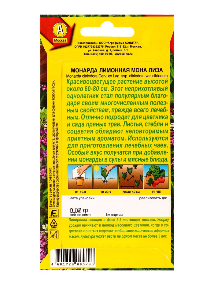 Семена Монарда лимонная Мона Лиза, Ц/П,0,02 г