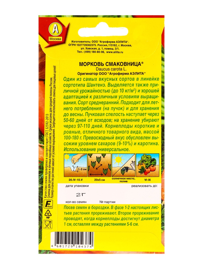 Набор семян Морковь "Мармеладница", цп, 5 шт.