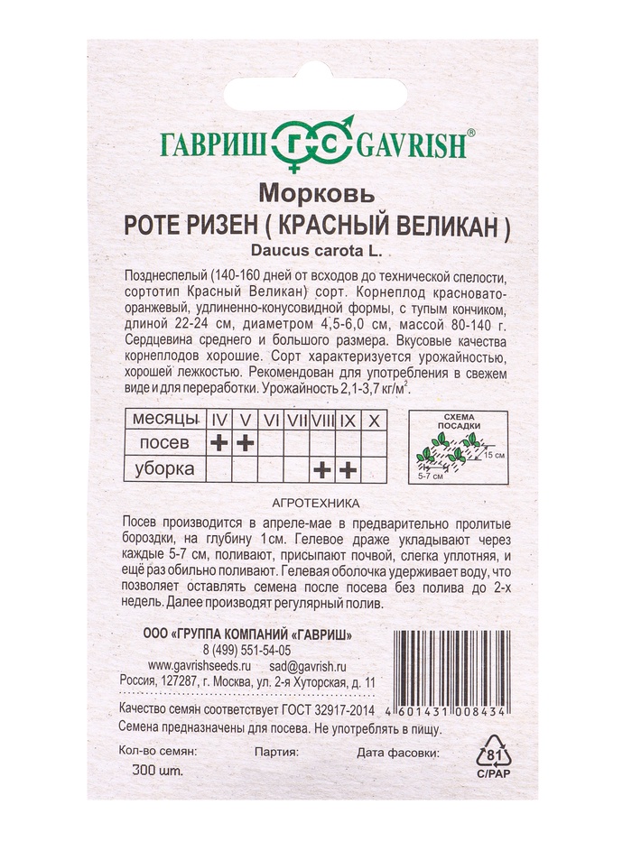 Семена Морковь гранулированный Роте Ризен 300 шт. гель