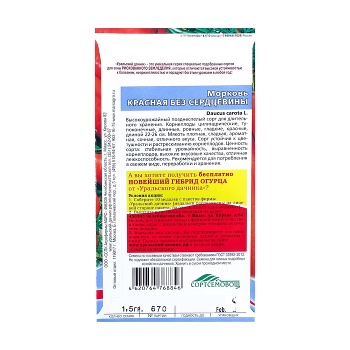 Высокоурожайный позднеспелый сорт для длительного хранения. Корнеплоды цилиндрические, тупоконечные, длинные, ровные, гладкие, красные, длиной 22-26 см. Мякоть плотная, сладкая, ароматная, сочная, отличного вкуса. Сорт устойчив к цветушности и растрескиванию корнеплодов. Ценность сорта: стабильная урожайность, выравненность корнеплодов, высокие вкусовые качества, отличная лежкоспособность.