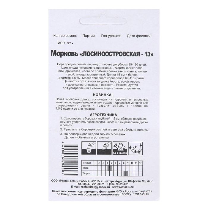 Морковь лучше растет на легких суглинистых и супесчаных почвах. Лучшими предшественниками считаются картофель, лук, томаты, огурцы, бобовые. Весной перед посевом в почву вносят комплексное минеральное удобрение, обеспечивающее необходимое питание овощным культурам в период всей вегетации. Посев в конце апреля в бороздки на глубину 2-3 см. Расстояние между рядами 18-20 см. Семена в драже! При попадании влаги на гранулу оболочка рассыпается. Расстояние между драже в ряду 4-6 см. Всходы не прореживают. Дальнейшем уход заключается в прополке, рыхлении, поливе.