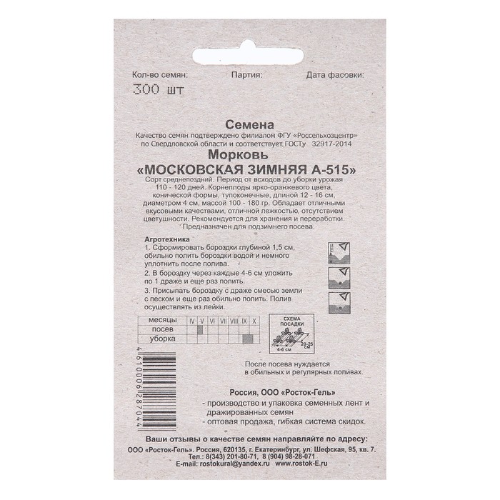 Среднеспелый сорт. Период от всходов до уборки урожая 110- 120 дней. Сортотип Шантенэ. Корнеплод конический, тупоконечный. Длина до 16 см. Масса 100-180 г. Окраска поверхности, мякоти и сердцевины оранжевая. Отличные вкусовые качества. Сорт устойчив к цветушности. Рекомендуется для хранения и переработки.