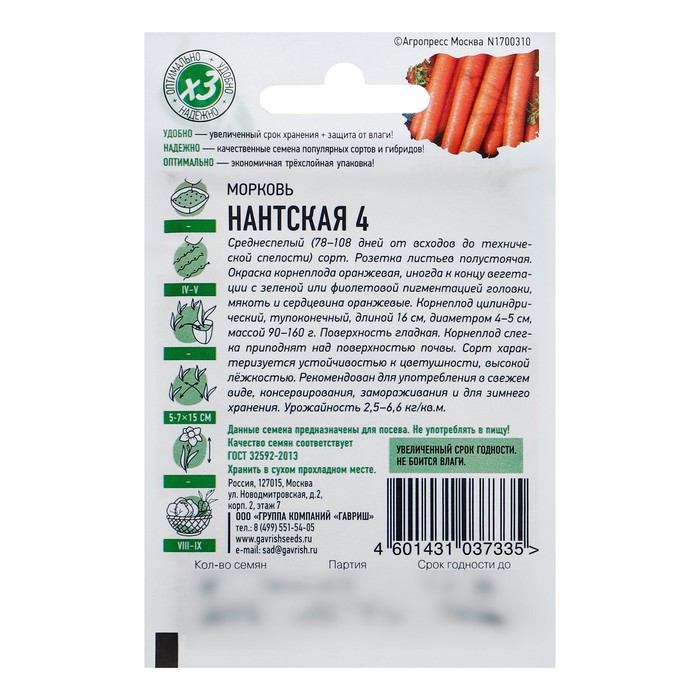 Семена Морковь "Нантская 4", 1,5 г серия ХИТ х3