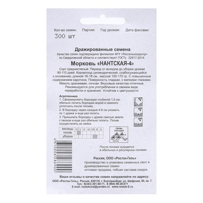 Морковь «Нантская 4» — легендарный сорт, почитаемый всеми овощеводами. Особенно советуем купить его начинающим огородникам, поскольку сорт неприхотлив, но радует высокой урожайностью и идеальным внешним видом корнеплода, который часто называют эталонным для многих сортов. Вкусовые качества «Нантской 4» также являются определенным стандартом для селекционеров. В легком грунте сорт показывает лучшую урожайность: до 6,5 кг с одного квадратного метра. Сорт считается среднеспелым. Отлично хранится.