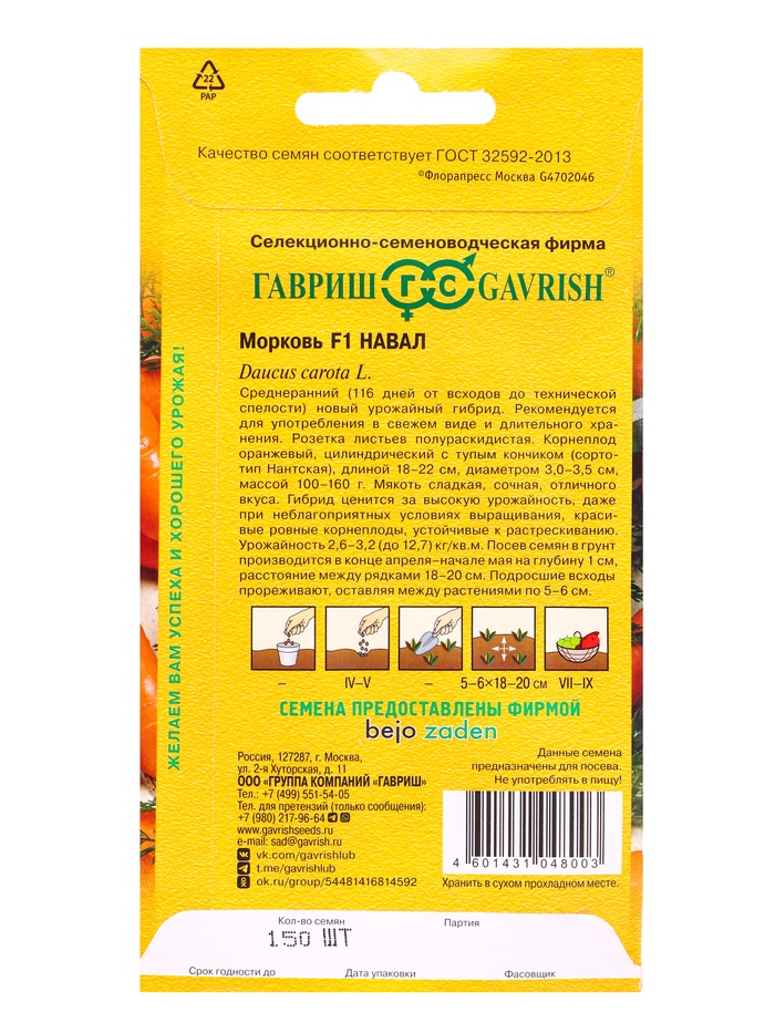 Семена Морковь Навал F1 150 шт. (Голландия)