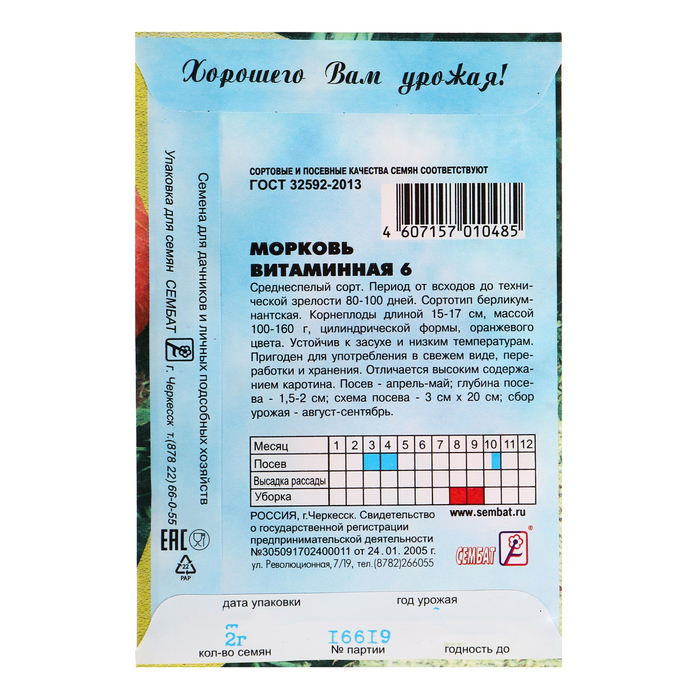 Урожайный среднеспелый сорт, отличающийся повышенным содержанием каротина, из-за чего особенно рекомендуется для употребления в сыром виде, а также для приготовления детского и диетического питания. Розетка листьев полустоячая. Корнеплоды цилиндрической формы, тупоконечные, цвет - ярко-оранжевый, сердцевина маленькая, не отличающаяся по цвету от мякоти. Масса корнеплодов - 65-200 грамм, почти целиком погружены в почву, благодаря чему их головка не зеленеет. Обладает отличными вкусовыми качествами. Сорт подходит для зимнего хранения, не склонен к растрескиванию. Великолепно подходит для использования в пищу в свежем виде, также подходит для приготовления, консервирования, заморозки.