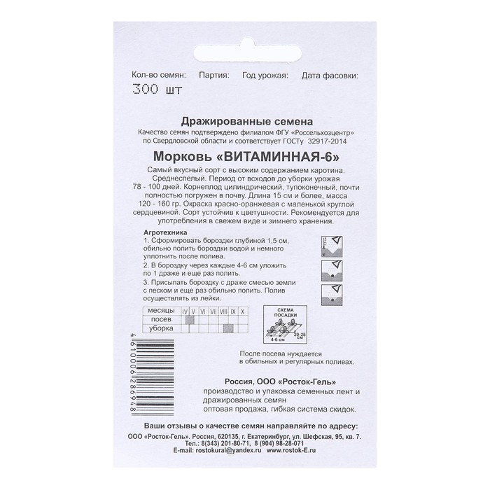 Среднеспелый (78–100 дней от всходов до технической спелости) сорт. Посев семян в грунт производят в конце апреля–начале мая на глубину 1 см, расстояние между рядками 15 см. Подросшие всходы прореживают, оставляя между растениями по 5–7 см. Розетка листьев полустоячая. Корнеплод оранжевый, цилиндрический, тупоконечный, длиной 15 см, диаметром 4–5 см, массой 60–160 г, почти полностью погружен в почву. Сердцевина звездчатая и граненая. Боковые корни нитевидные. Глазки мелкие, поверхность гладкая. Вкусовые качества корнеплодов хорошие. Сорт характеризуется устойчивостью к цветушности, высокой лежкостью. Рекомендован для употребления в свежем виде и для зимнего хранения. Урожайность 3,7–7,8 кг/м2.