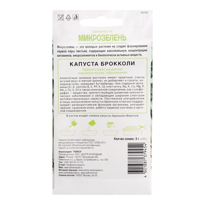 В состав входят семена капусты брокколи Фортуна.