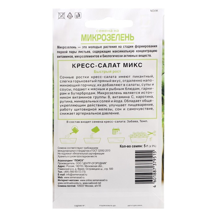 Микрозелень клевера обладает нежным вкусом и приятным освежающим ароматом. Стоит присмотрется к Семена кресс-салата используют для выращивания аппетитной микрозелени, обладающей омолаживающими, антиоксидантными, общеукрепляющими свойсвами. Пикантный, остренький, слегка горьковатый и пряный вкус и потрясающий аромат ростков кресс-салата не оставят никого равнодушным. Пригодны для употребления в свежем виде или в качестве витаминной добавки к супам, салатам. Срезка зелени (на стадии формирования первых двух листов) производится на 7-10 день после посева семян.