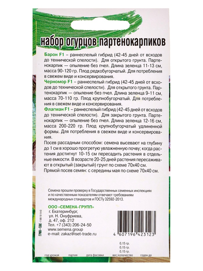 Вырастите идеальные огурцы без лишних хлопот! Набор семян огурцов без опыления – это отличный выбор для тех, кто хочет получить вкусный урожай с минимальными усилиями. В ассортимент входят такие сорта, как Барон F1, Черномор F1 и Флагман F1.