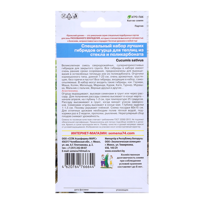 Самые лучшие селекционные новинки собраны в одном пакете! Набор состоит из самых ранних гибридов, предназначенных для выращивания в теплицах, зимних садах, патио и комнатных условиях. Все огурчики корнишонного типа, длинной 7-13 см., очень сочные, ароматные, хрустящие, без горечи и пустот. В наборе представлены основные типы «Русской» и «Голландской» рубашки зеленцов. Все гибриды отличаются повышенной устойчивостью к болезням, максимальной устойчивостью к стрессовым ситуациям, растянутым плодоношением – до заморозков.