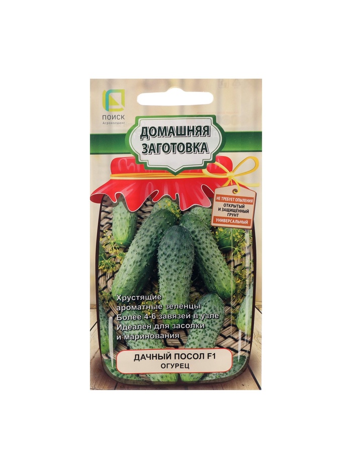 Тонкая кожица, хрустящая мякоть, отличный вкус. Среднеспелый партенокарпический гибрид женского типа цветения. Для открытого и защищённого грунта. От всходов до начала плодоношения 45-50 дней. Растение среднерослое, формирует по 4-6 и более завязей в узле. Зеленцы длиной 10-17 см, массой 90-120 г, цилиндрические, белошипые, крупнобугорчатые. Устойчив к вирусу огуречной мозаики, оливковой пятнистости, мучнистой росе и толерантен к пероноспорозу. Для потребления в свежем виде и консервирования.