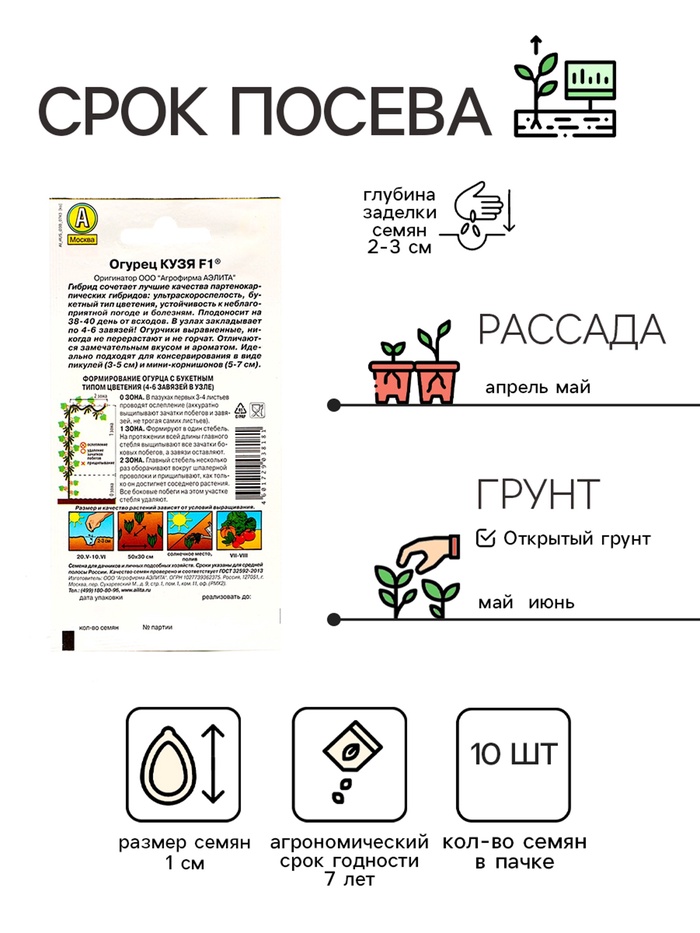 Семена высаживают в грунт в начале мая. Всходы появляются через 20 дней. Глубина заделки — 1,5–2 см.