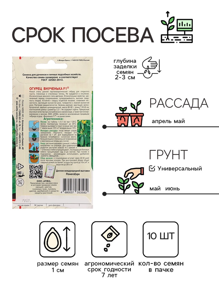 Новый очень ранний партенокарпический гибрид для открытого грунта, пленочных и стеклянных теплиц. Не нуждается в опылении. Исключительно женского типа цветения. Отличительные свойства: увеличенный период плодоношения, суперурожайность, высокая товарность плодов. Устойчив к вирусу огуречной мозаики, оливковой пятнистости, настоящей мучнистой росе, толерантен к ложной мучнистой росе. Растение среднеплетистое. Зеленец крепкий, хрустящий, мелкобугорчатый, овально-цилиндрический, масса 80-92 г, длина 7,9-9,8 см, соотношение длины к диаметру 3,2:1. Не содержит горечи. Прекрасные вкусовые качества при употреблении в свежем виде, а также при консервировании и засолке.