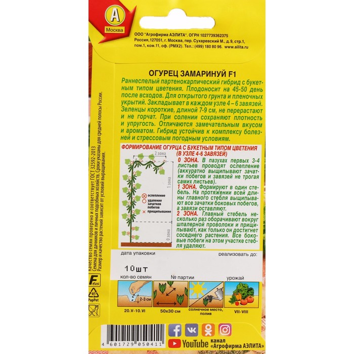 Раннеспелый партенокарпический гибрид с букетным типом цветения. Плодоносит на 45-50 день после всходов. Для открытого грунта и пленочных укрытий. Закладывает в каждом узле 4 – 6 завязей. Зеленцы короткие, длиной 7-9 см, не перерастают и не горчат. При солении сохраняют плотность и упругость. Отличаются замечательным вкусом и ароматом. Гибрид устойчив к комплексу болезней и стрессовым погодным условиям. Урожайность под пленкой 12-15 кг/м2.
