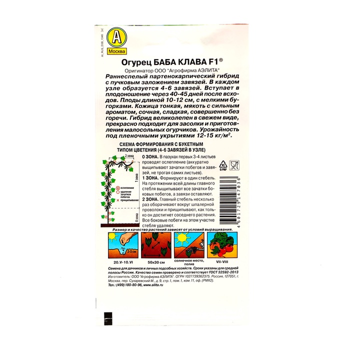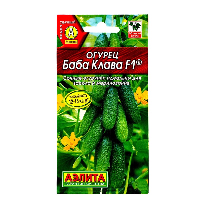 Раннеспелый партенокарпический гибрид с пучковым заложением завязей. В каждом узле образуется 4-6 завязей. Вступает в плодоношение через 40-45 дней после всходов. Плоды длиной 10-12 см, с мелкими бугорками. Кожица тонкая, мякоть с сильным ароматом, сочная, сладкая, совершенно без горечи. Гибрид великолепен в свежем виде, прекрасно подходит для засолки и приготовления малосольных огурчиков. Урожайность под пленочными укрытиями 12-15 кг/м2.