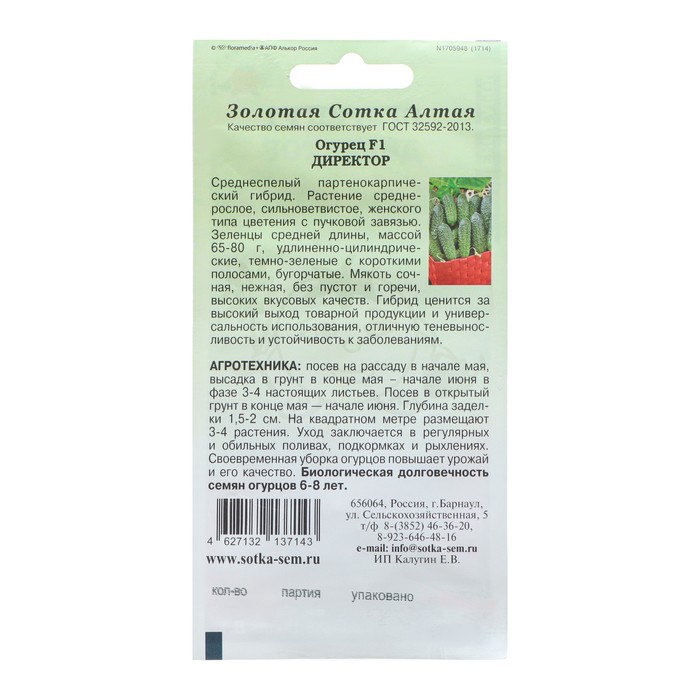 Семена Огурец «Директор F1», партенокарпический, 5 шт.