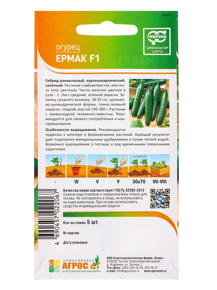 Семена Огурец «Ермак», F1, 5 шт., «Агросс»