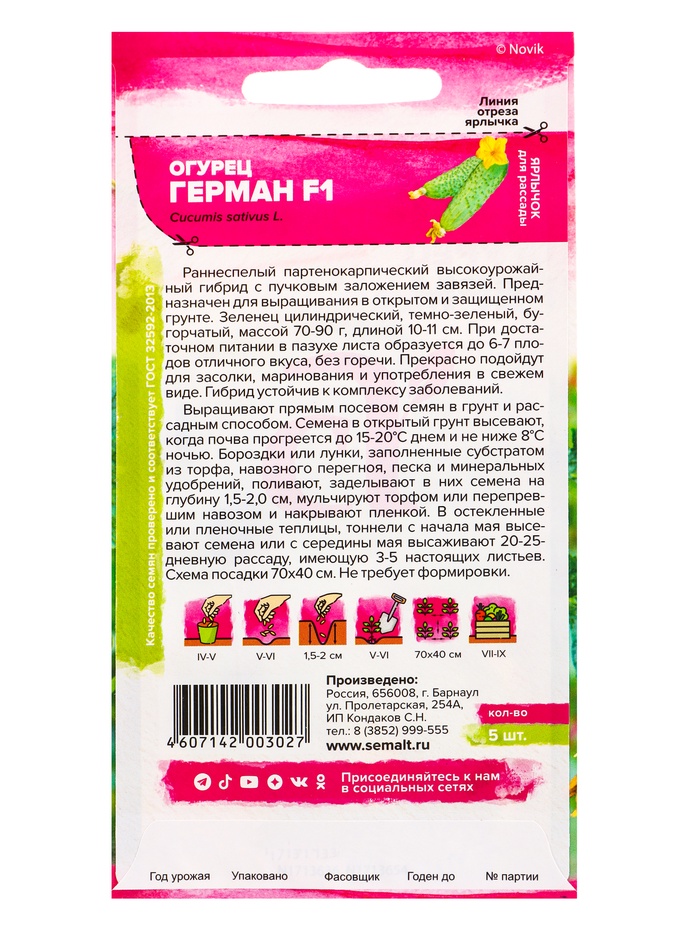 Семена Огурец «Герман F1», 5 шт., Seminis