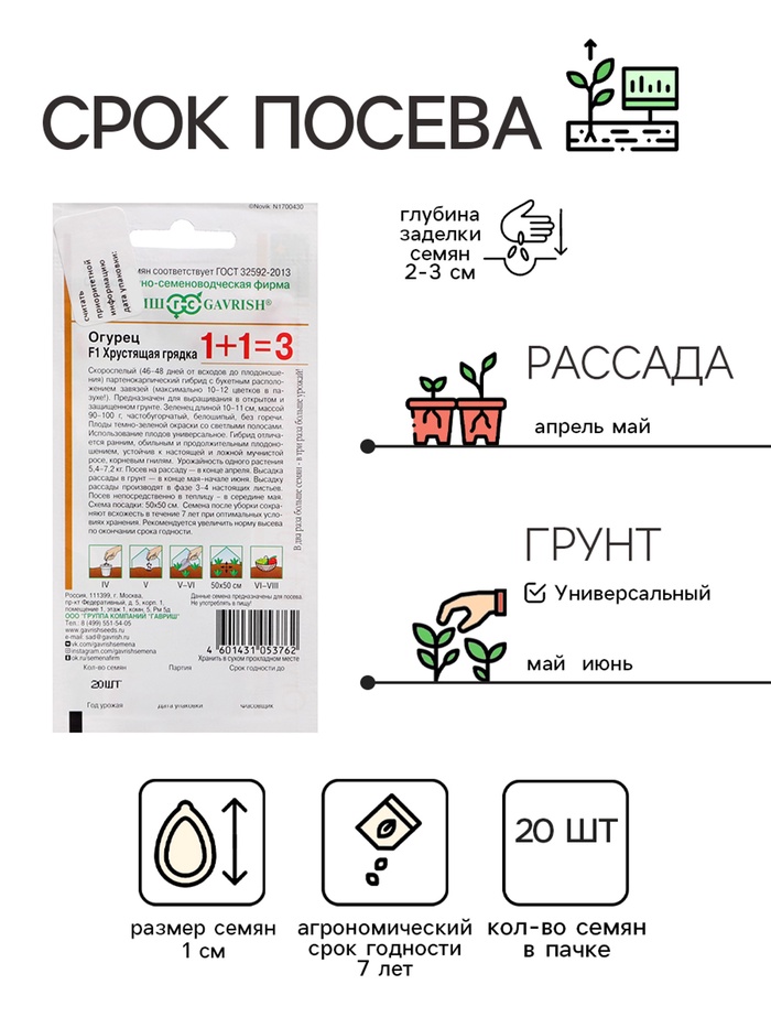 Скороспелый (46-48 дней от всходов до плодоношения) партенокарпический гибрид с букетным расположением завязей (максимально 10-12 цветков в пазухе!).