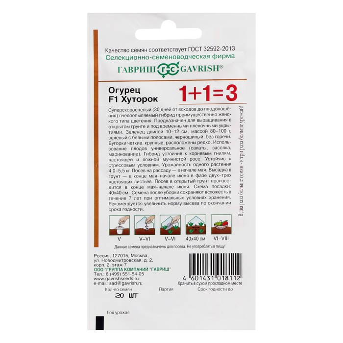 Суперскороспелый (30 дней от всходов до плодоношения) пчелоопыляемый гибрид преимущественно женского типа цветения. Предназначен для выращивания в открытом грунте и под временными пленочными укрытиями. Посев на рассаду в начале мая. Высадка в грунт в конце мая – начале июня в фазе двух-трех настоящих листьев. Посев в открытый грунт производится в конце мая – начале июня. Схема посадки 40х40 см. Зеленец длиной 10-12 см, массой 80-100г, зеленый с белыми полосами, черношипый, без горечи. Бугорки четкие, крупные, расположены редко. Использование плодов универсальное (салаты, засолка, маринование). Гибрид устойчив к корневым гнилям, настоящей и ложной мучнистым росам. Устойчив к стрессовым условиям. Урожайность одного растения 4-5,5 кг.