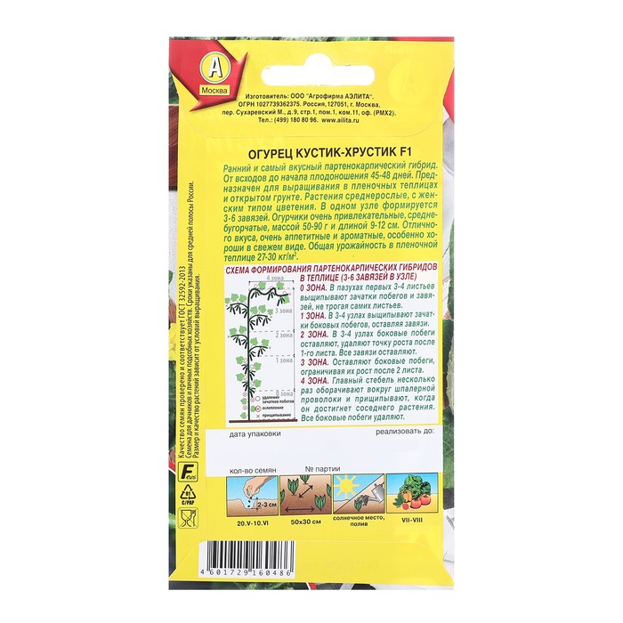 Семена Огурец Кустик-хрустик F1 Парт Ц/П 7шт